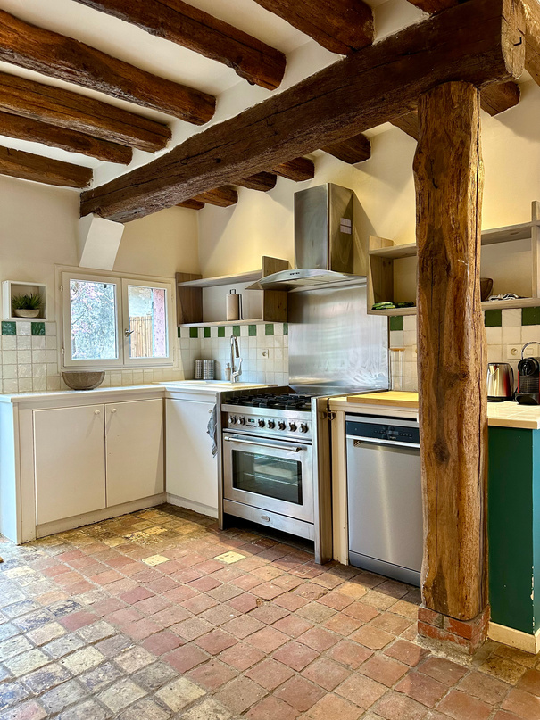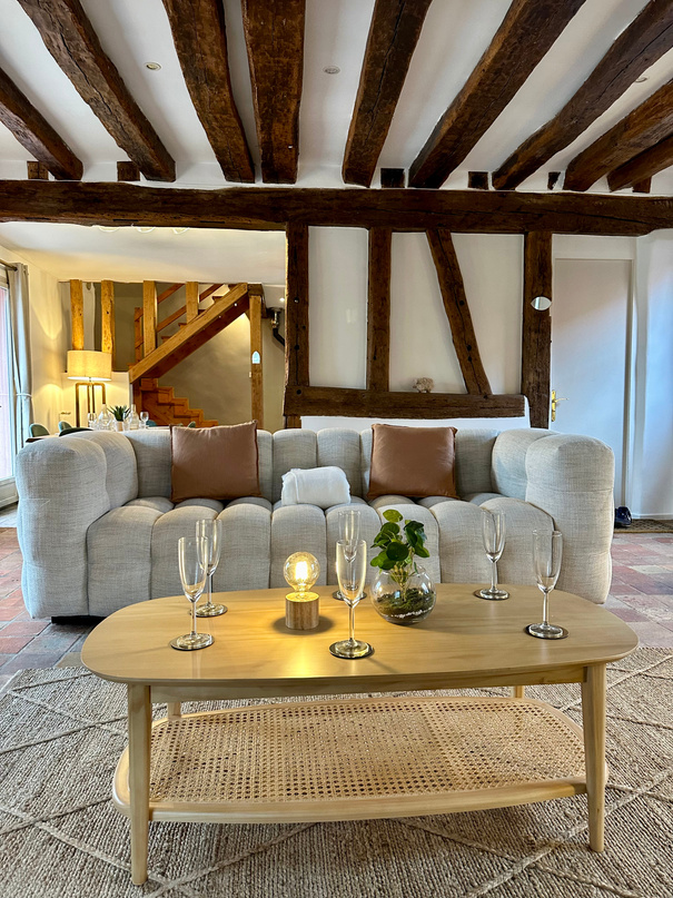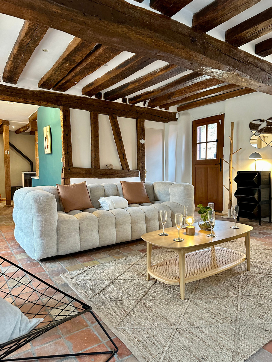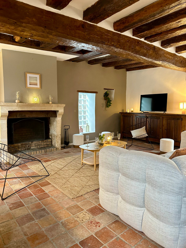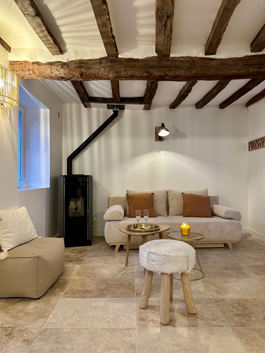 Située à Bourdonné, La grande Valoise est une jolie maison ancienne avec pierre, poutres, tomettes, cheminée et poêle.